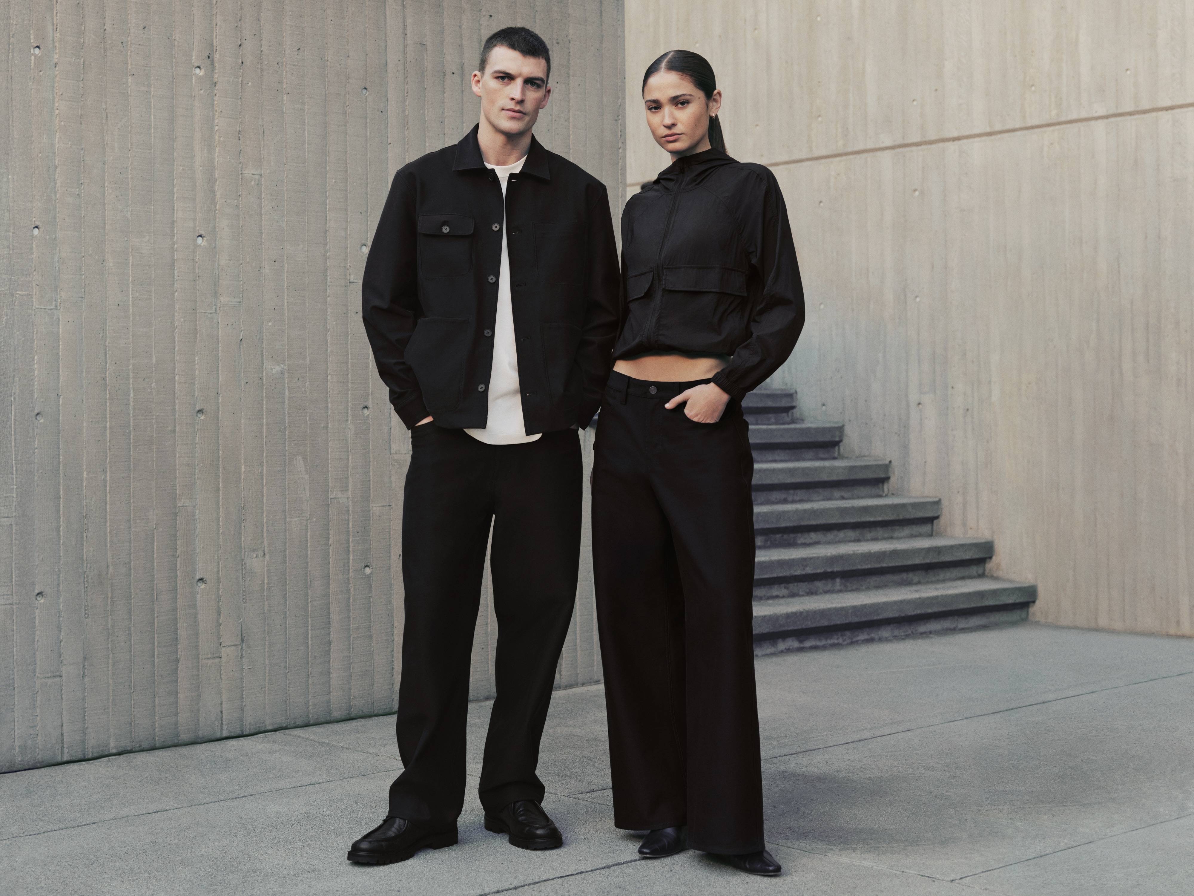 五袋款长裤系列用摩登剪裁呈现多元版型,为女士客人带来低腰阔腿裤、中腰直筒长裤及高腰微喇裤三种裤型。棉混纺 Utilitech